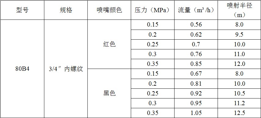 80B4金摇臂喷头的特点及用途: